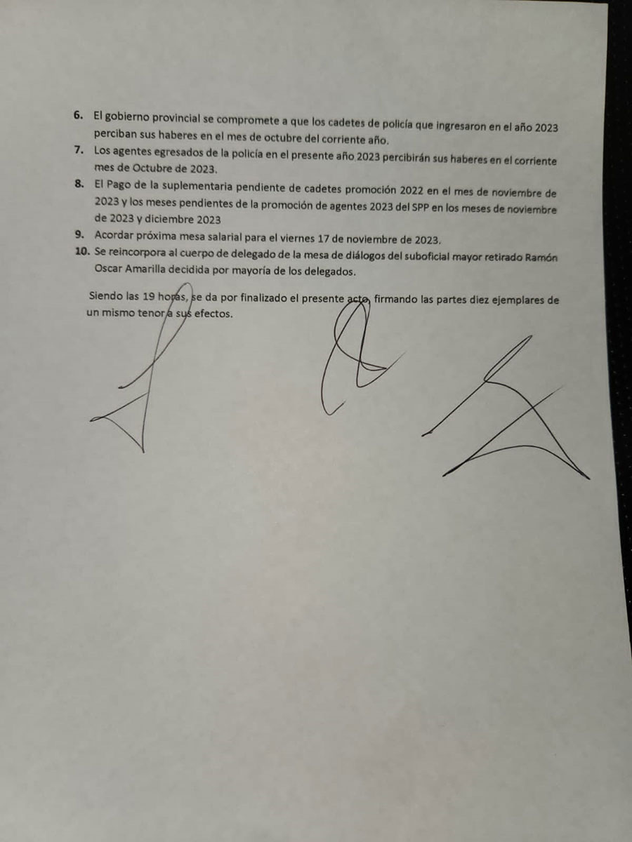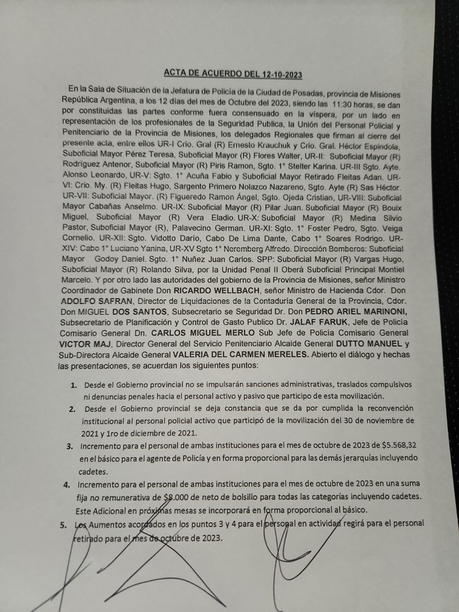 Confirmó que se firmó un acta de acuerdo salarial para el corrientes mes de octubre, para todo el personal de la fuerza de la Policía y Servicio Penitenciario.