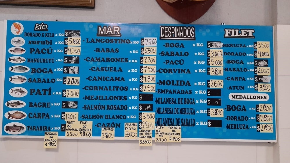 En contrapartida, Marcos resaltó que “ahora lo que más se está saliendo y lo que menos subió son las distintas clases de filetes de pescado: el de dorado está a 4.500 pesos el kilo sin espinas, en tanto el salmón de río o el armado están 3.200 pesos el kilo; y hay más tipos de filetes que rondan los mismos precios por kilo”.
