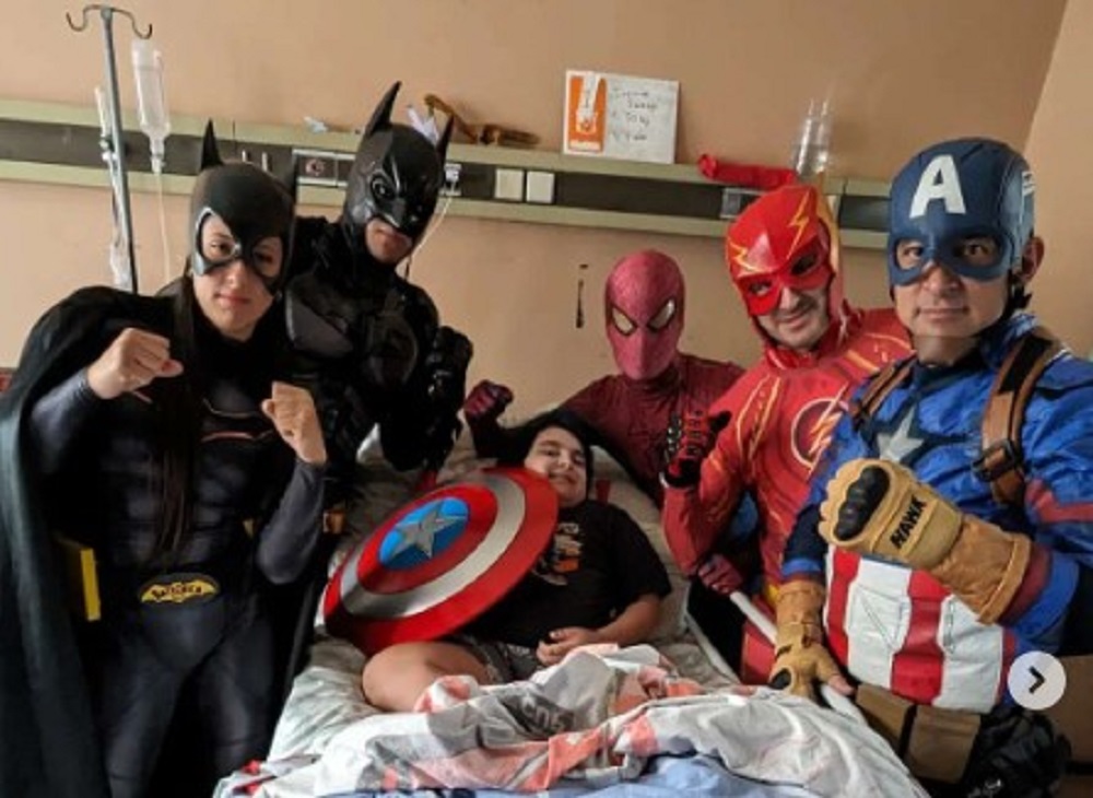 Al visitar hospitales no tenemos un horario fijo, ni específico; de igual manera tratamos de coordinar entre todos para estar. Somos un total de seis. Uno de nuestros superhéroes es Policía; el otro trabaja en una estación de servicio, el restante presta servicio en una automotriz; todos son laburantes y nos hacemos un tiempo para estar la mayoría posible.