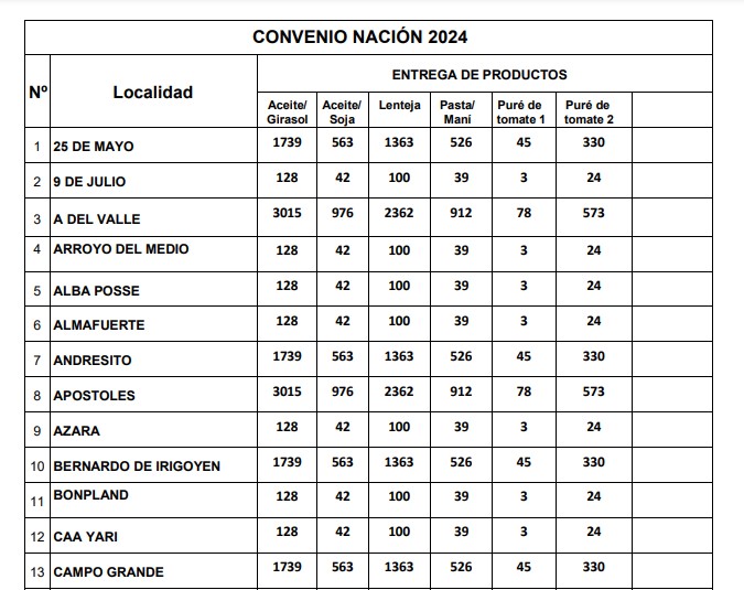 “El reparto lo van a llevar adelante los intendentes de distintas localidades del interior de Misiones, para comedores escolares de jornada extendida y/o Escuelas de Familias Agrícolas (EFAs)”.
