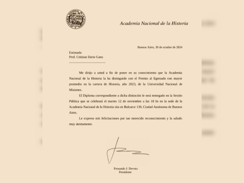 Por ejemplo, para el “criado y malcriado” en Oberá Cristian Ganz lo indispensable de la vida podría estar en un pedazo de papel que certifica que es profesor en historia. Ese “título” que detrás de esa letra esconde una vida plagada de determinación y superación que es digna de estar en esos libros que le despertaron la pasión por su profesión y que podría llevarlo a estar en esas páginas. Es que el próximo 12 de noviembre, este graduado de la Universidad Nacional de Misiones (UNAM) será reconocido por la Academia Nacional de la Historia en Argentina como el mejor promedio de su carrera entre todas las universidades nacionales del país.