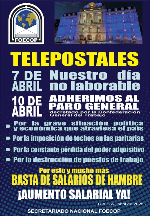 Los trabajadores del servicio postal en todo el país se adherirán al paro general convocado por la CGT para el 10 de abril, lo que afectará significativamente los servicios de correos.